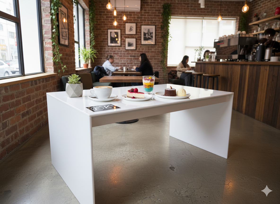 ドリンクやスイーツが映える美しい天板は、お客様の目に留まること間違いなし。