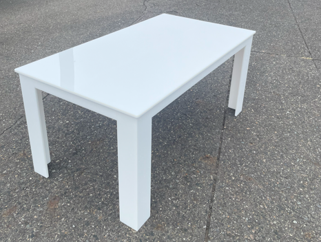 光沢のあるホワイトアクリルが、空間に清潔感とモダンな印象を与えます。